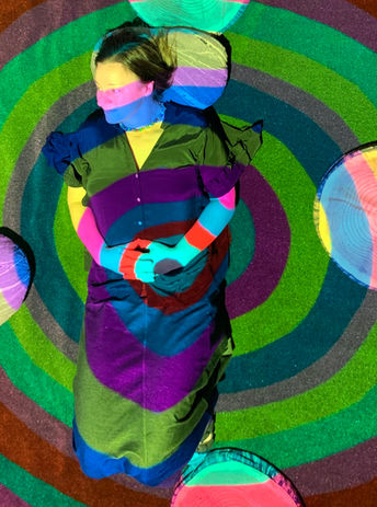 During the playing of this animation the audience is seated on artificial grass quite close to the screen, so that the overhead projection plays onto their bodies. The colours grow in brightness and saturation as the animation progresses to make the viewer feel like a part of the installation.